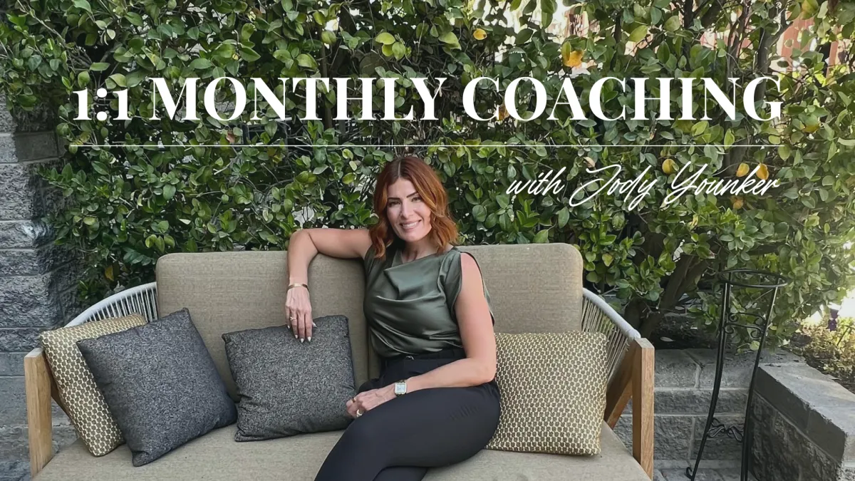 1:1 Monthly Coaching with Jody Younker$299 / MonthNo long term commitment - Cancel anytime!